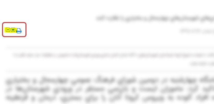 ۱- مطابق شکل زیر، در بالای مطالب بخشی وجود دارد که با کلیک بر روی هر دکمه می توانید رنگ فونت مطلب و اندازه قلم آن را متناسب با نیاز خود تغییر دهید.