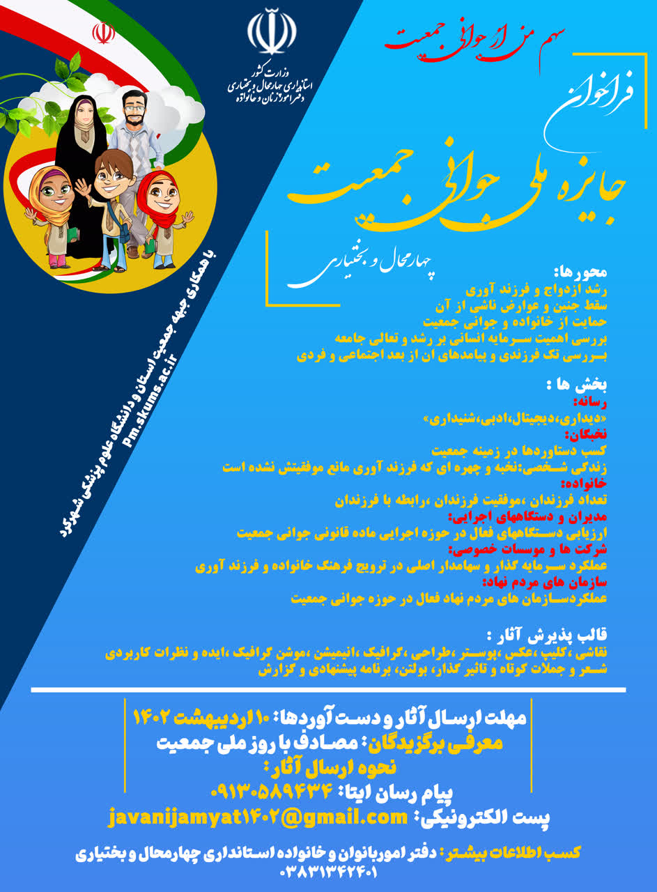 آغاز فراخوان جايزه ملي جواني جمعيت در چهارمحال و بختياري